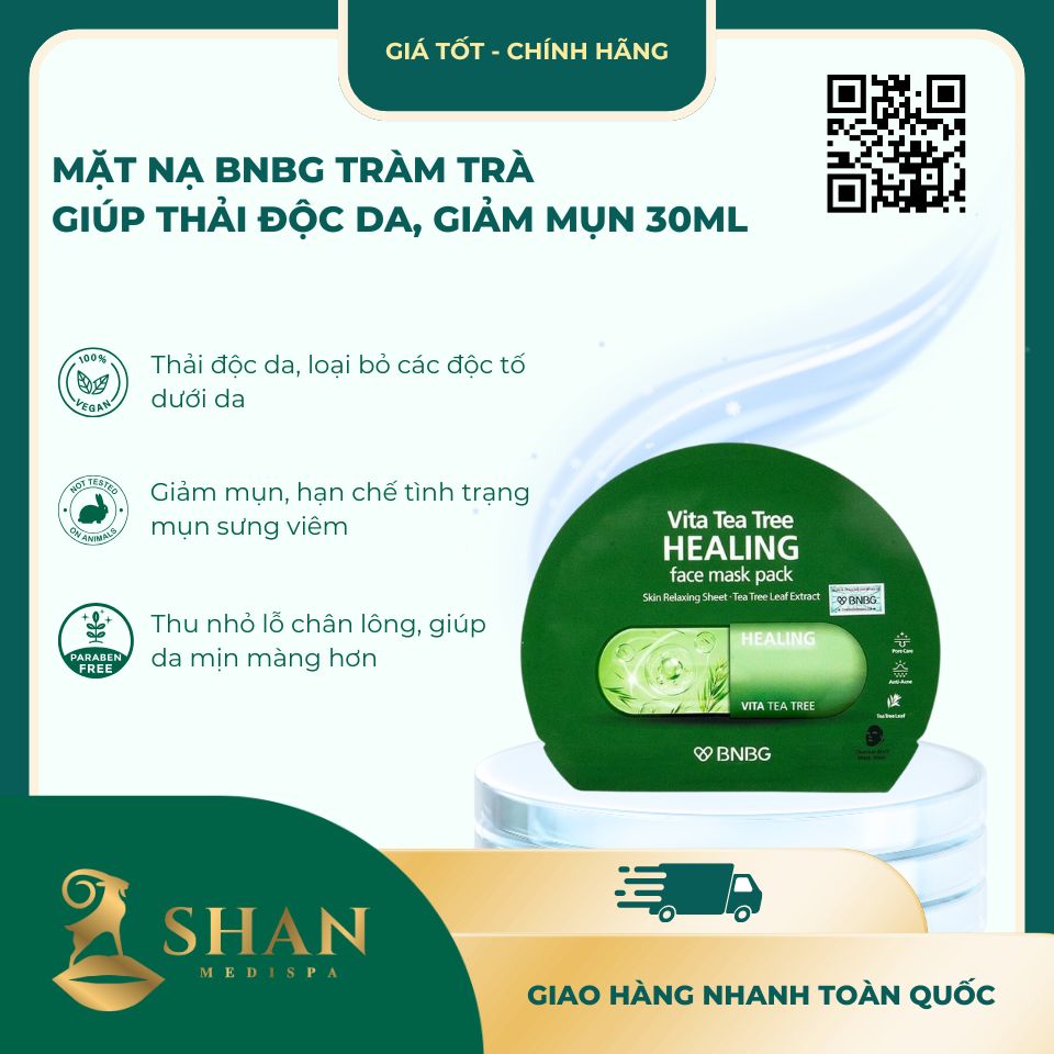 | Kết Luận | Mặt Nạ BNBG Tràm Trà Giúp Thải Độc Da, Giảm Mụn 30ml là sự lựa chọn hoàn hảo để chăm sóc và bảo vệ làn da của bạn. Với các thành phần tự nhiên và công thức hiệu quả, sản phẩm không chỉ giúp thải độc, giảm mụn mà còn mang lại làn da mịn màng, căng bóng và khỏe mạnh. Hãy trải nghiệm Mặt Nạ BNBG Tràm Trà tại các cửa hàng của Shan Medispa hoặc truy cập trực tiếp tại shanspa.vn để nhận được sự tư vấn và hỗ trợ tốt nhất. |