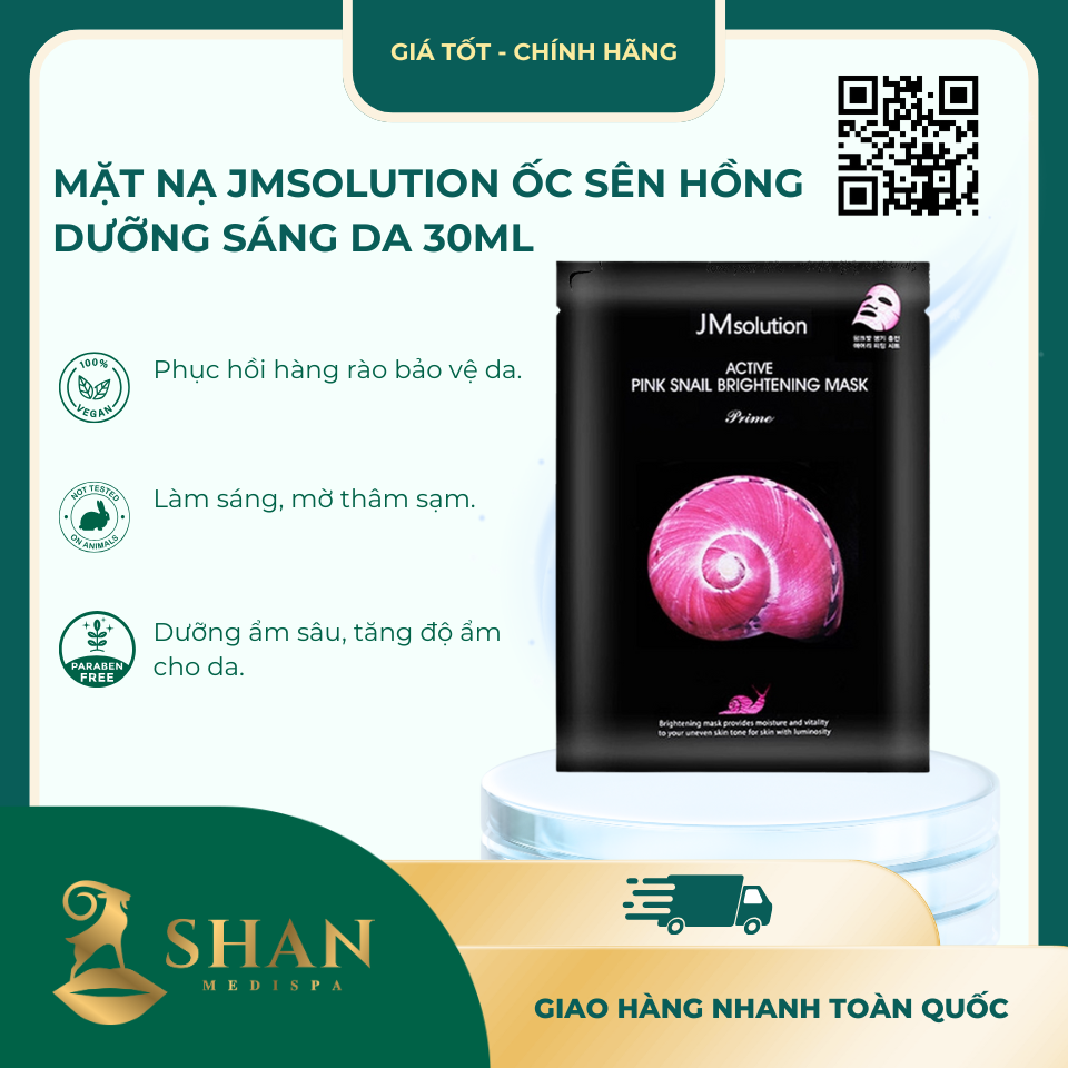 Mặt Nạ JMsolution Active Pink Snail Brightening Mask Prime 30ml là lựa chọn hoàn hảo cho làn da xỉn màu, thiếu sức sống và cần phục hồi chuyên sâu. Với chiết xuất ốc sên hồng, phức hợp vitamin và HA đa tầng, sản phẩm không chỉ cung cấp độ ẩm tối ưu mà còn làm sáng đều màu và tăng độ đàn hồi. Hãy trải nghiệm ngay tại Shan Medispa hoặc đặt mua trên shanspa.vn để cảm nhận hiệu quả vượt trội