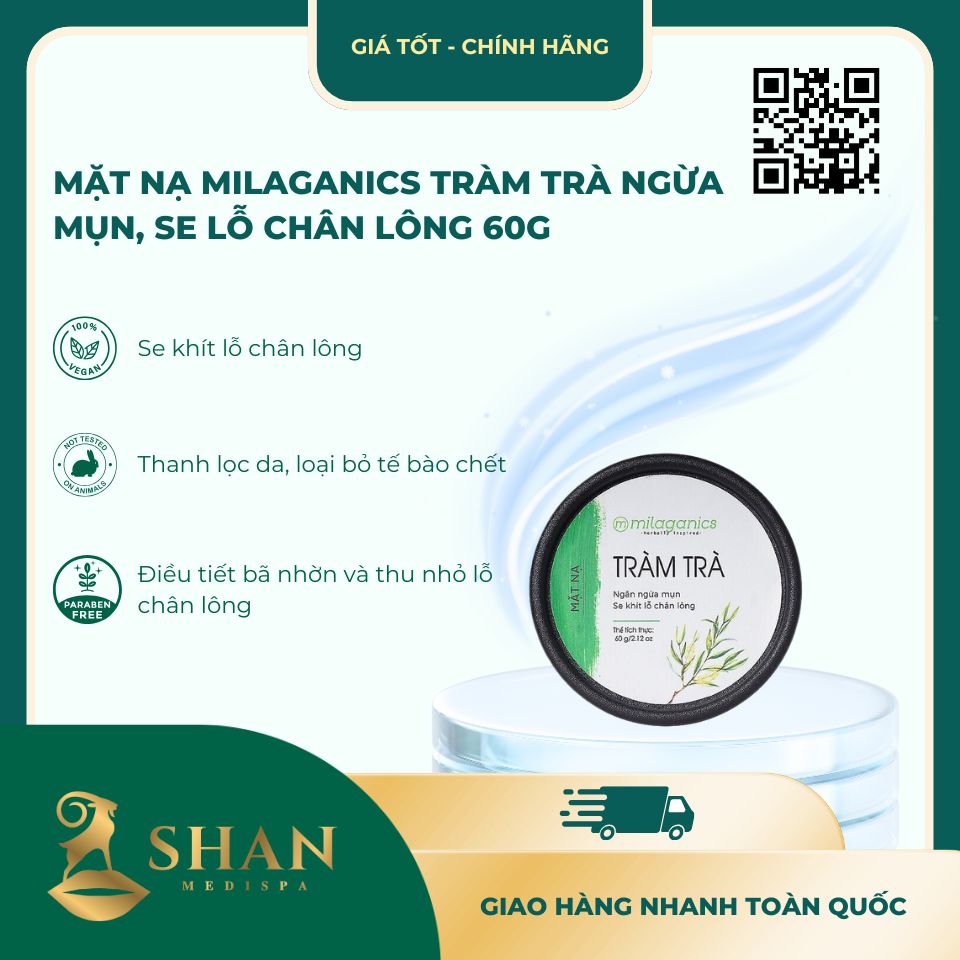| Kết Luận | Mặt Nạ Milaganics Tràm Trà Ngừa Mụn, Se Lỗ Chân Lông 60g là sự lựa chọn hoàn hảo cho làn da dầu và da mụn. Sản phẩm không chỉ giúp làm sạch dịu nhẹ mà còn hỗ trợ giảm mụn, vết thâm và ngăn ngừa mụn tái phát. Với các thành phần hiệu quả như Salicylic Acid, Tinh dầu tràm trà, và Chiết xuất cây phỉ, sản phẩm mang lại làn da sạch sẽ, mịn màng và khỏe mạnh hơn. Hãy trải nghiệm sản phẩm tại các cửa hàng của Shan Medispa và shanspa.vn để cảm nhận sự khác biệt trên làn da của bạn. |