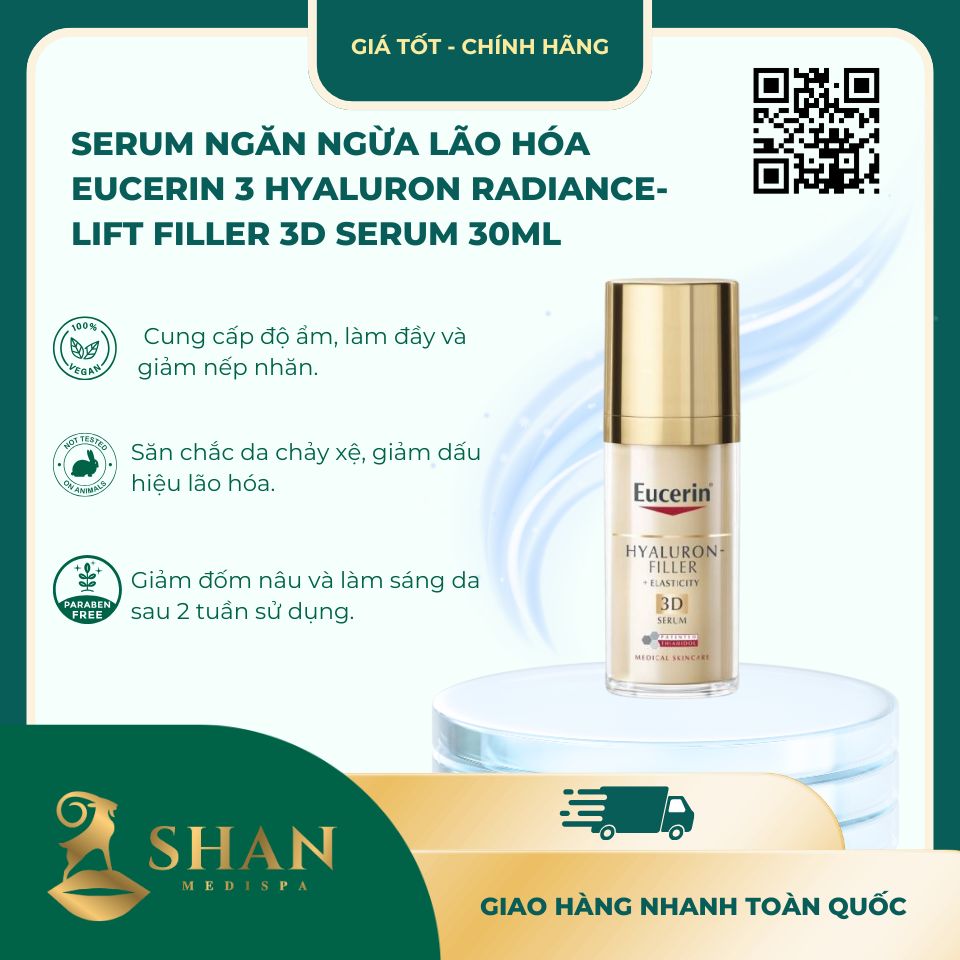 Serum Eucerin 3 Hyaluron Radiance-Lift Filler 3D Serum là lựa chọn hoàn hảo để giúp bạn chống lại dấu hiệu lão hóa, cung cấp độ ẩm, săn chắc da và giảm thâm sạm. Hãy trải nghiệm sản phẩm tại các cửa hàng Shan Medispa hoặc shanspa.vn ngay hôm nay!